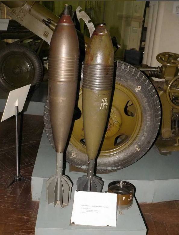 Первоначально в боекомплект миномета входили две фугасные мины: стальная Ф-853С и чугунная Ф-853А. Стальная фугасная мина Ф-853С имела стальной цельноштампованный корпус и шестиперый штампованный стабилизатор. Каждое крыло состояло из двух изогнутых перьев, расположенных под углом 30°. Чугунная фугасная мина Ф-853А имела литой корпус из сталистого чугуна. Стабилизатор чугунной мины имел пять пар перьев, расположенных под углом 36°. Обе мины имели головной взрыватель ГВМЗ-7, имеющий две установки: на фугасное действие и на осколочное действие. 24 марта 1958 года была начата разработка активно-реактивной 160-мм мины ОТ (проект «Цилиндр»), снаряженной отравляющим веществом типа Р-35. Работы продолжались до 15 февраля 1961 года.