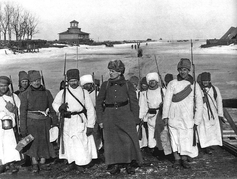 Пехота, одетая в маскхалаты, 17 марта 1921 года идет в атаку по льду Финского залива.