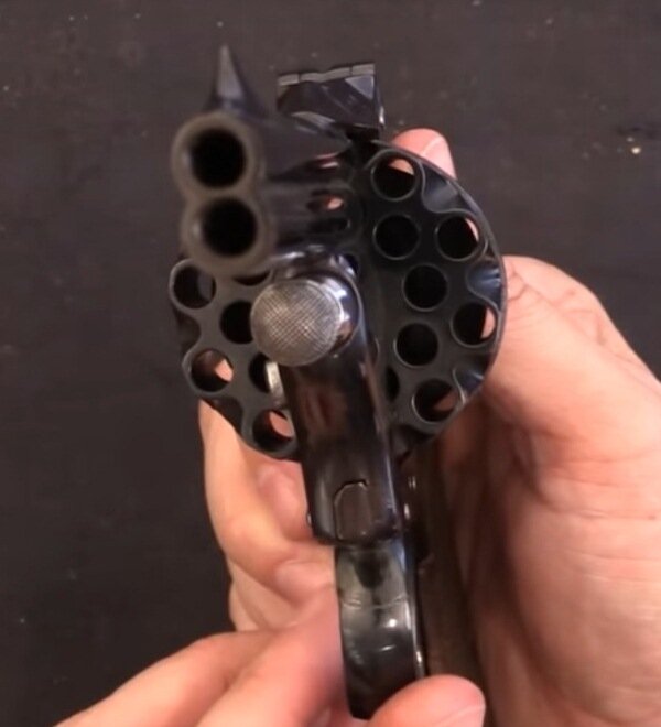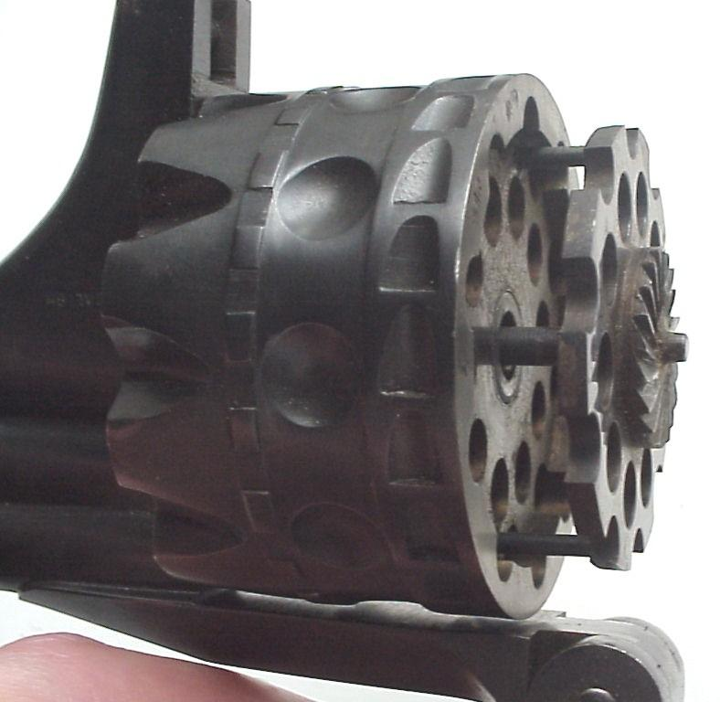 Револьвер был двуствольным, с двойным бойком, что является необходимостью для использования необычного барабана, в котором каморы расположены в два ряда.