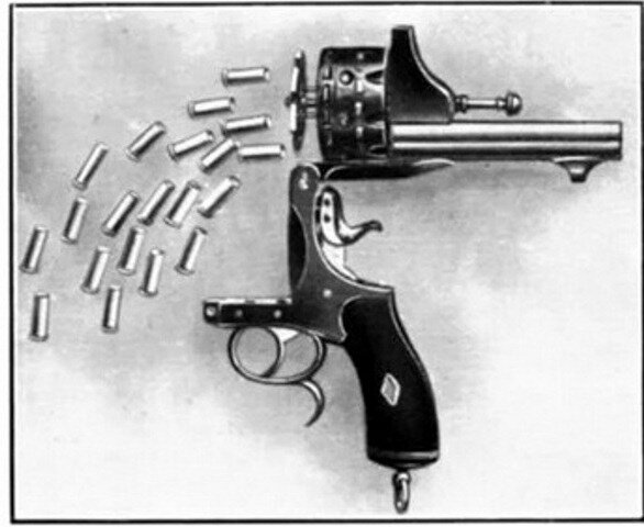 Каморы были сделаны с таким расчетом, чтобы при повороте барабана только один патрон устанавливался напротив нижнего или верхнего ствола по очереди.