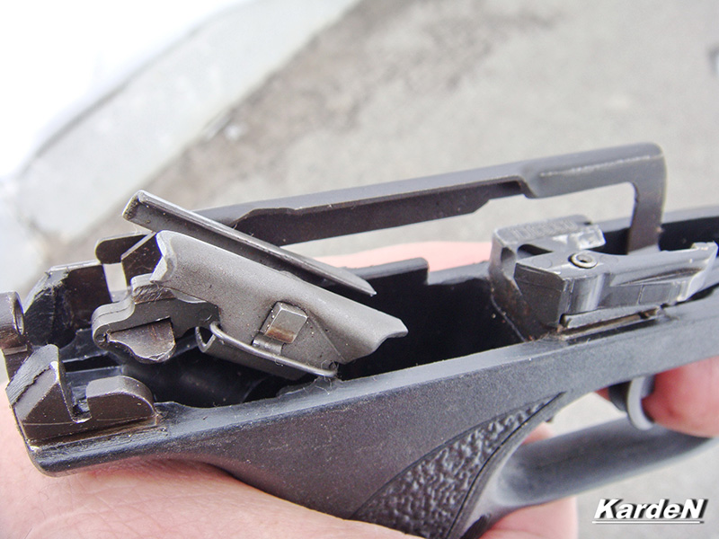 — своеобразный спуск – тугой и непредсказуемый. Обрабатывать спуск, как на курковом пистолете, на нем невозможно.
