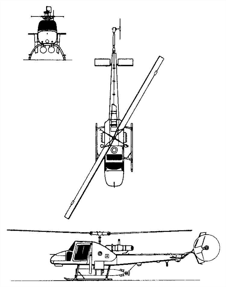 Вертолет оснащался турбовальным двигателем Turbomeca-Agusta ТАА.230 со взлетной мощностью 300 л. с. (224 кВ) и 240 л. с. (194 кВ) при длительном полете.