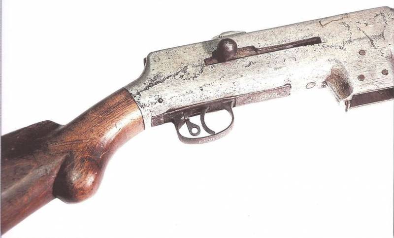 Позади затвора помещалась крупная и мощная возвратно-боевая пружина, занимавшая все свободное пространство ствольной коробки. Оружейнику пришлось самостоятельно изготавливать эту деталь. Сырьем для нее, вероятно, послужила какая-либо проволока, возможно, трофейная. Так, другие партизаны-конструкторы в этих целях использовали проволочные элементы каркаса от сбитых немецких аэростатов.