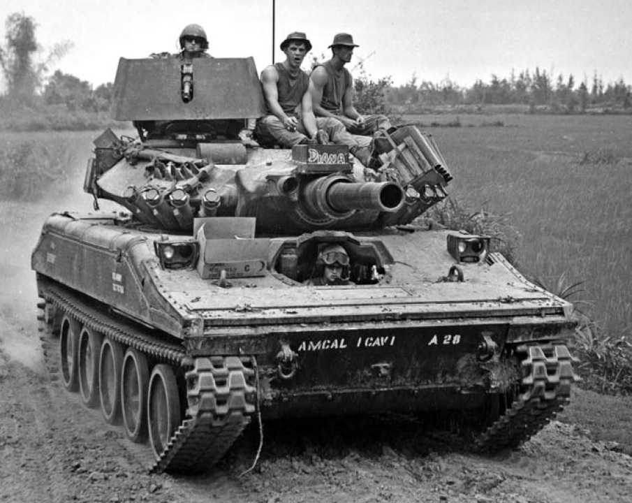 Предложение об отправке «Шериданов» во Вьетнам впервые было высказано в 1966 году, когда их производство только начиналось. Идею пришлось отложить в долгий ящик по банальной причине: для М551 ещё не было налажено производство снарядов. Военные благоразумно отказались от отправки в «горячую точку» «пулемётной тележки за 300 тысяч баксов», как в то время окрестили М551. В марте 1967 года в докладе командования армии США вновь было выдвинуто требование направить во Вьетнам «лёгкие бронемашины, не уступающие по подвижности БТР М113, но превосходящие их по вооружению».