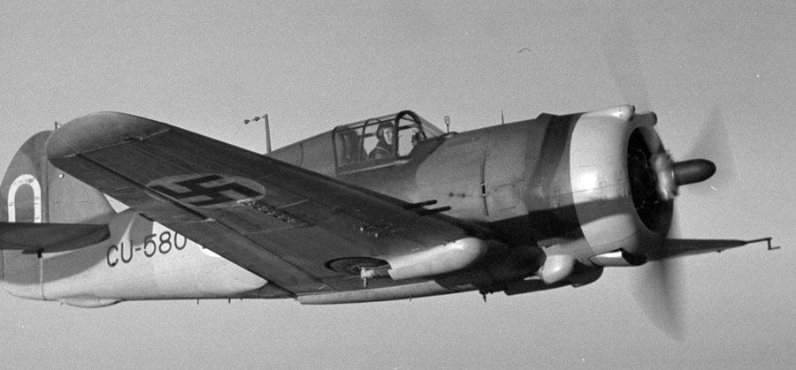 10.Curtiss 75А-1 с шестипулеметным вооружением финских ВВС. 44 такие машин были захвачены немцами во Франции в 1940 году и переданы Финляндии. Финские летчики, воевавшие на «Хоках», которых они называли «Суссу» («милочка» или «милашка»), претендовали на 190 воздушных побед при потере всего 15 самолетов.