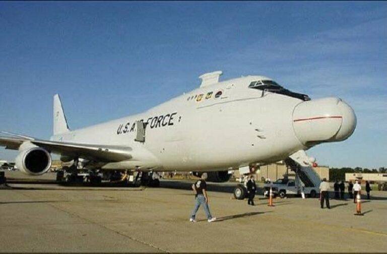 Это самолет 747, претерпевший модификацию для установки авиационного лазера, предназначенного для перехвата баллистических ракет. Огромный сферический нарост в передней части скрывает сложную лазерную систему. Эстетика отсутствует, но технологическое содержание оценивается в миллиарды.