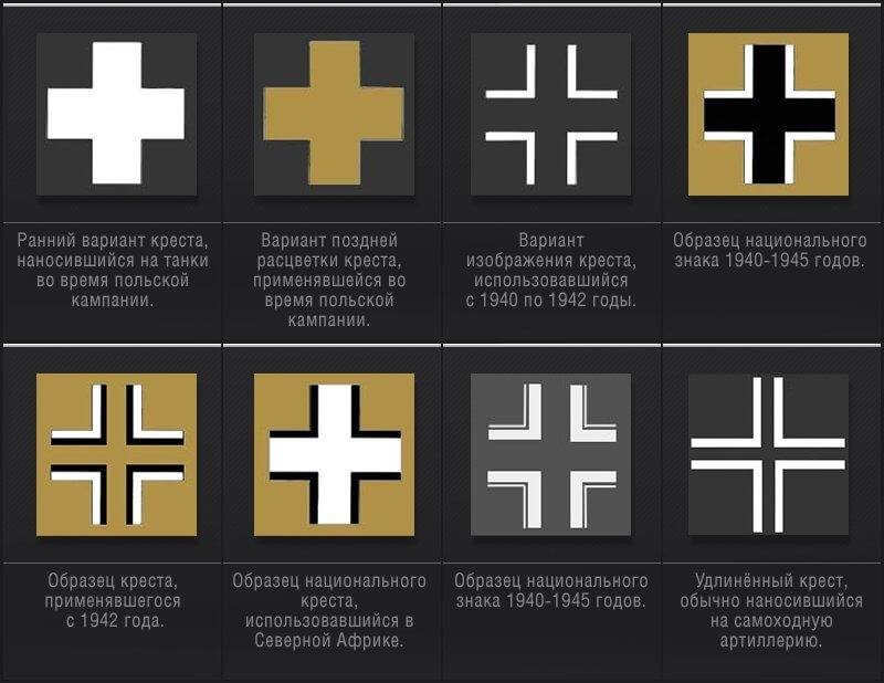Сам крест, который широко использовался на немецкой военной технике в годы Второй мировой войны, представляет собой стилизацию тевтонского креста и креста Святого Николая (Николая Чудотворца). Первыми, кто начал использовать черный крест в качестве опознавательного знака стали германские рыцари, это произошло ещё в средневековье в эпоху крестовых походов. Латинский крест черной эмали с белой эмалевой границей стал на долгие годы официальным символом Тевтонского ордена. Рыцари ордена широко использовали стилизованное изображение черного креста на белом фоне на своих щитах, а также плащах, одежде и знаменах.
