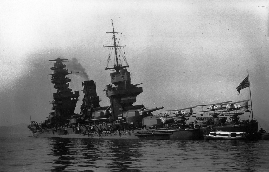 В 1930–33 годах площадку перенесли на третью (первую мидельную) башню и увеличили количество гидросамолётов до трёх (изначально на кораблях базировались бипланы Nakajima E4N2, в 1938 году они были заменены на Nakajima E8N2). В 1940–41 году на линкоре смонтировали катапульту и, по некоторым данным, оборудовали ангар для гидросамолётов (с 1942 года на кораблях базировались бипланы Mitsubishi F1M).