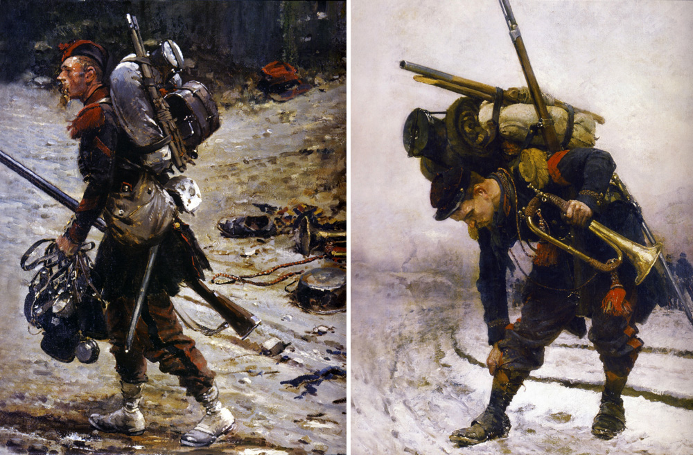 Немцы, конечно, тоже страдали от холода, но их обмундирование было лучше приспособлено к таким погодным условиям. В частности, они имели теплые вязаные подшлемники, которые зимой носили под касками. Да и шинели у них были сшиты из более плотной ткани, а сапоги с шерстяными носками защищали ноги лучше, чем французские ботинки с гетрами.