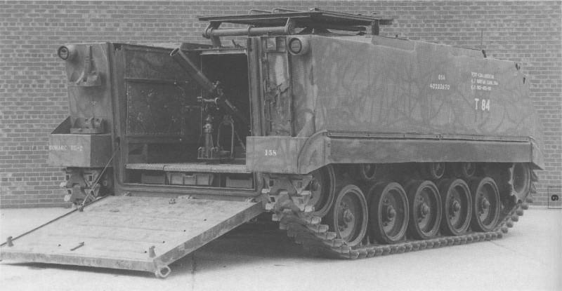Объемы десантного отделения позволили разместить в нем 10 солдат с оружием. Перевозить десант предлагалось на двух лавках, размещенных вдоль бортов. Основным средством посадки и высадки была крупная опускаемая аппарель в кормовом листе корпуса, оснащенная гидравлическими приводами. На случай поломки приводов или иных нештатных ситуаций в аппарели имелась дверь либо люк – конструкция этого устройства неоднократно менялась, как во время разработки проекта, так и после запуска серийного производства.