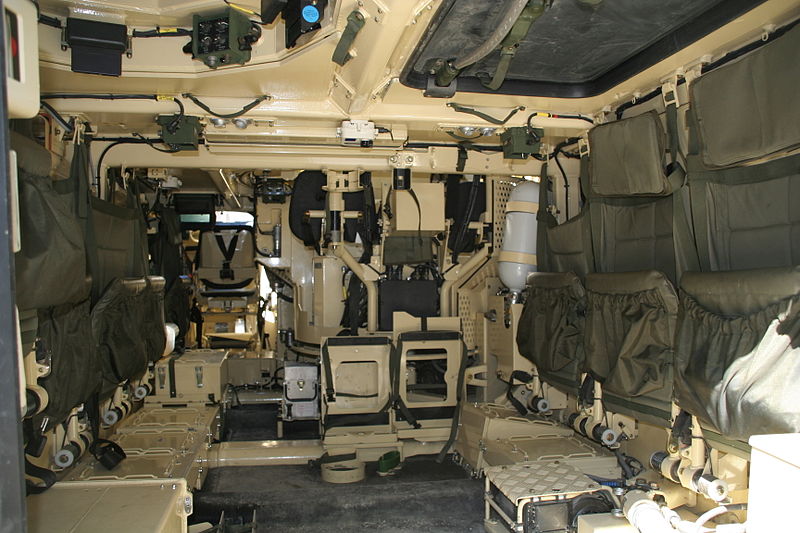 Место командира оборудовано дневным перископическим прицелом, и при необходимости командир может брать управление огнем на себя. Боекомплект, готовый к стрельбе, – 200 выстрелов к пушке и 700 патронов к пулемету, в укладке – 204 выстрела и 1300 патронов. В кормовой двери смонтирована амбразура с шаровой опорой для оружия десанта, а от установки в бортах шаровых опор для оружия десанта и смотровых блоков отказались, что типично для тяжелых БМП, когда предпочтение отдается защищенности от огня противника. Хотя установки для оружия десанта могут выполняться по требованию заказчика. Корпус и башня сварены из стальных броневых листов и обеспечивают круговую защиту от пуль стрелкового оружия и осколков. Лобовая проекция в пределах 12 град. в обе стороны от продольной оси машины в горизонтальной плоскости и от -5 до +8 град. по вертикали защищает от 30-мм бронебойного подкалиберного снаряда с дальности свыше 1000 м. На бортах башни установлено по 2 блока дымовых гранатометов (по 3 ствола в каждом блоке) с электрическими цепями стрельбы – всего 12 гранатометов.