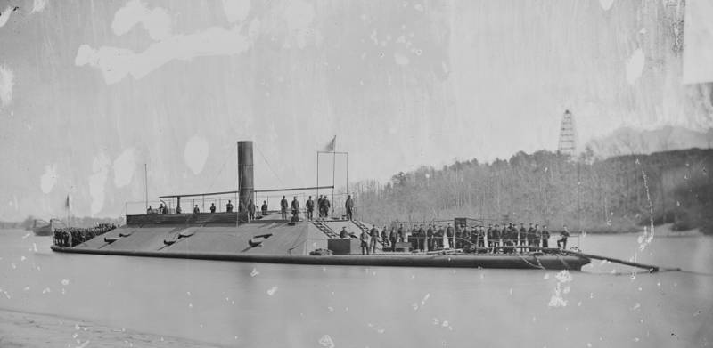 Понятно, что в 1861 году таких пуль не было вообще, так что, скорее всего, и кипы меньшей толщины могли их задерживать. В любом случае все эти «броненосцы» на Миссисипи использовались по-разному. Так, «тонкие броненосцы» осуществляли патрульную службу и препятствовали перевозке по реке контрабанды. Понятно, что для полицейских операций это было «самое то», только вот работа эта считалась и не престижной, и не благодарной, и слишком уж опасной, потому что тут было легче нарваться на неожиданную пулю из прибрежных кустов.
