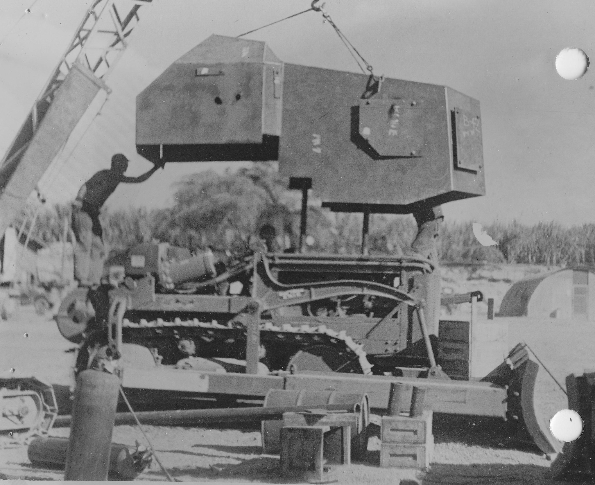 Примерно по такому принципу действовали «Морские Пчелы» (SeaBees), специальные инженерные подразделения ВМФ США. В 1944 году им понадобилось закрыть броней свою инженерную технику, прежде всего это касалось бульдозеров. В Нормандии засветились Caterpillar D7 с бронированными корпусами. Но в данном случае тихоокеанский ТВД. И база другая — International TD-18. Получилась довольно интересная и простая конструкция, причем «серийная».