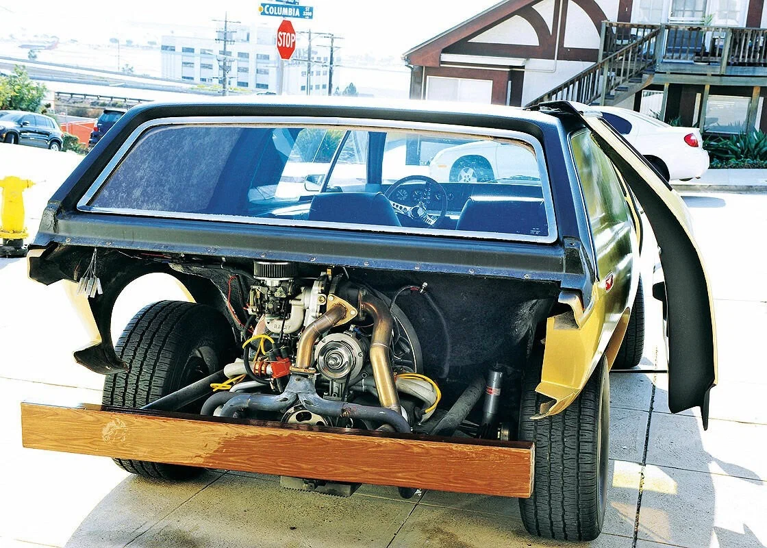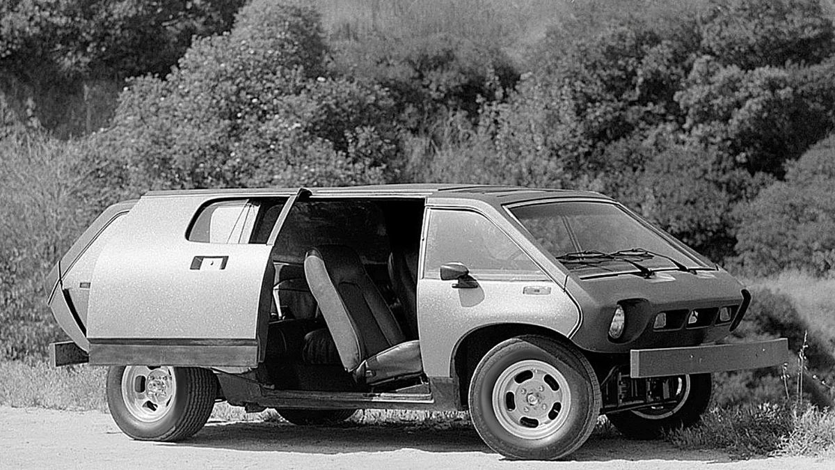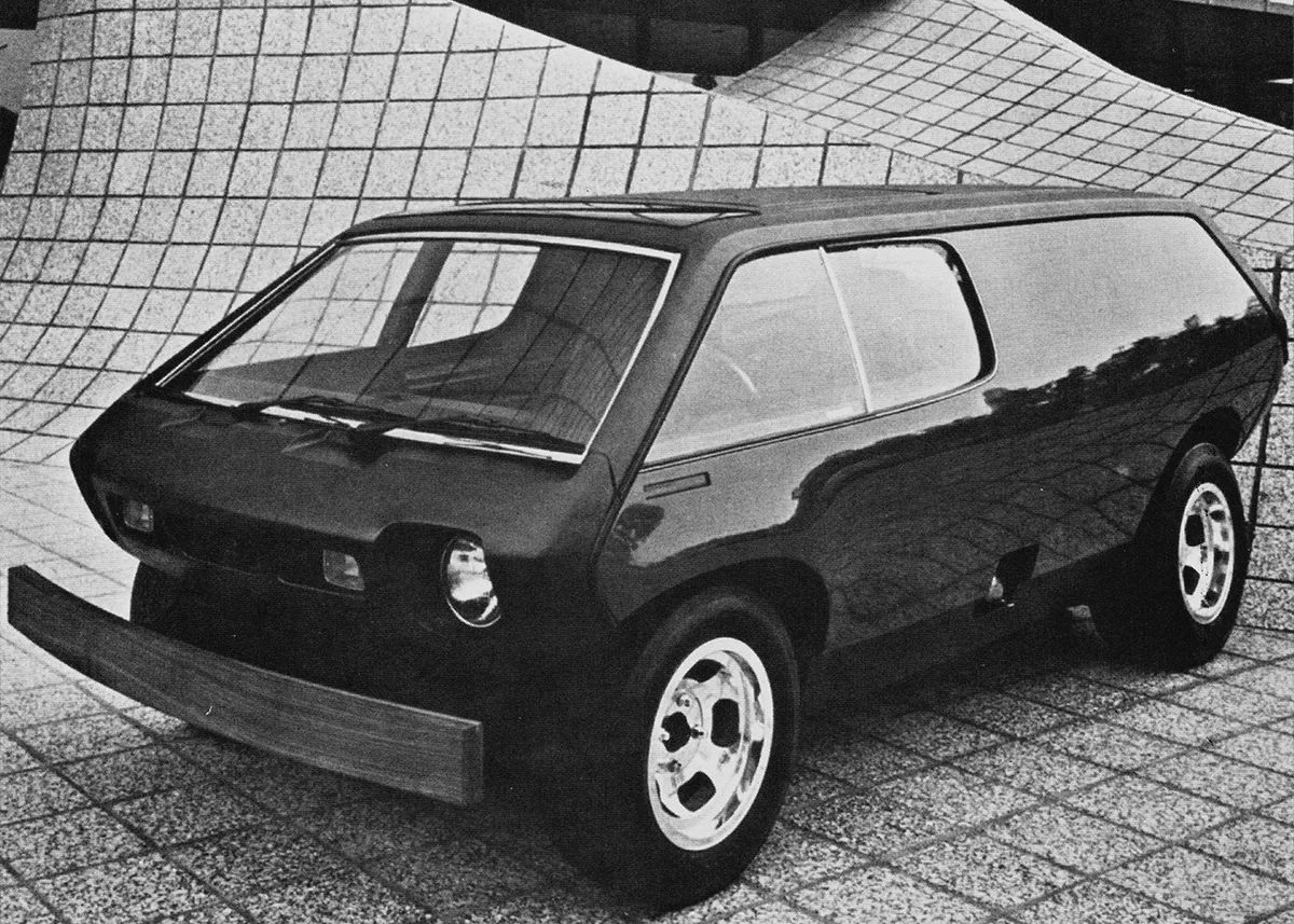Последнее, к слову, пришлось подвергнуть модернизации – из-за увеличенной длины кузова педальный узел переместился вперёд и вверх, а топливный бак в целях безопасности передвинули из передней части в центр кузова. Ещё одним необычным решением стало использование амортизирующих бамперов из композита. Своим внешним видом они напоминали деревянную балку, установленную на силовой конструкции. Оригинальной деталью служило и размещённое в передней части авто запасное колесо, призванное поглощать энергию удара при лобовом столкновении. А в крыше минивэна имелась внушительных размеров съёмная панель, заменявшая собой люк.