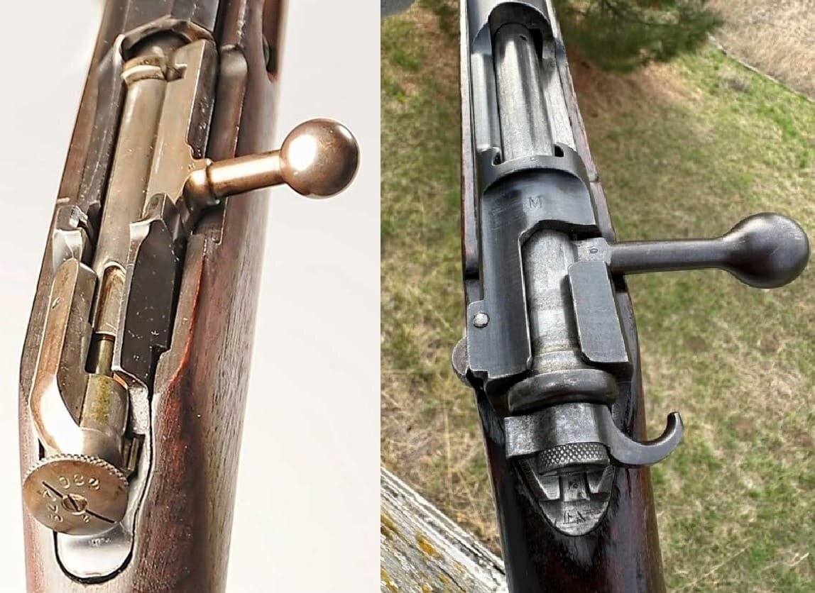 «крючок, служащий рукояткой для поворачивания предохранителя, представляет собой менее прочную и удобную рукоятку, чем крыло предохранителя системы Маузера и чем головка курка системы Мосина».