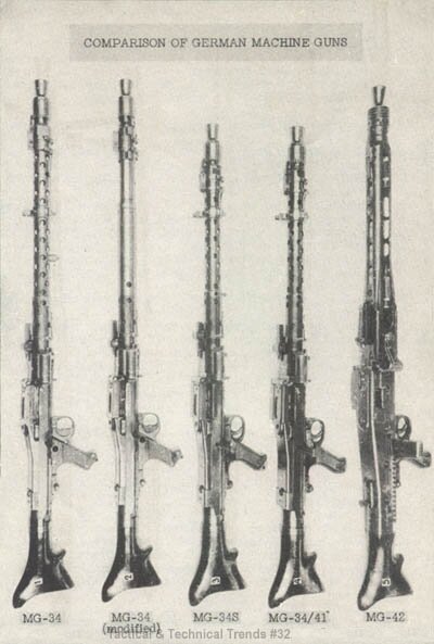 Приведенное ниже сравнение и фотографии немецких пулеметов моделей 34, 34 (модифицированный (танкjвый — ИО)), 34S, 34/41 и 42 основаны на данных, полученных с Абердинского полигона.