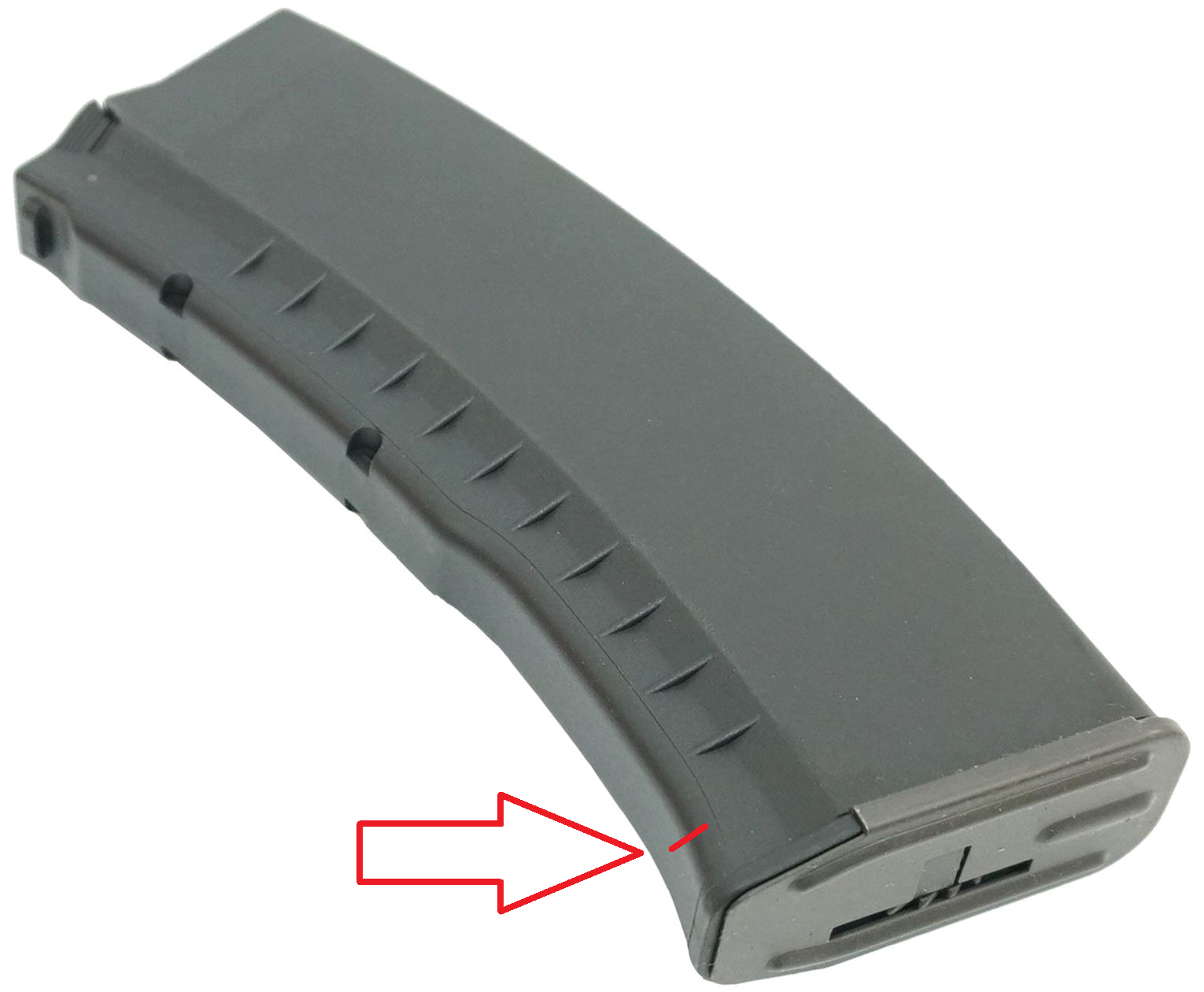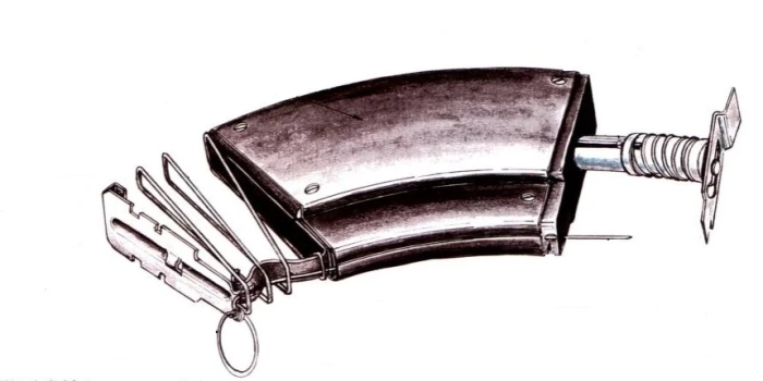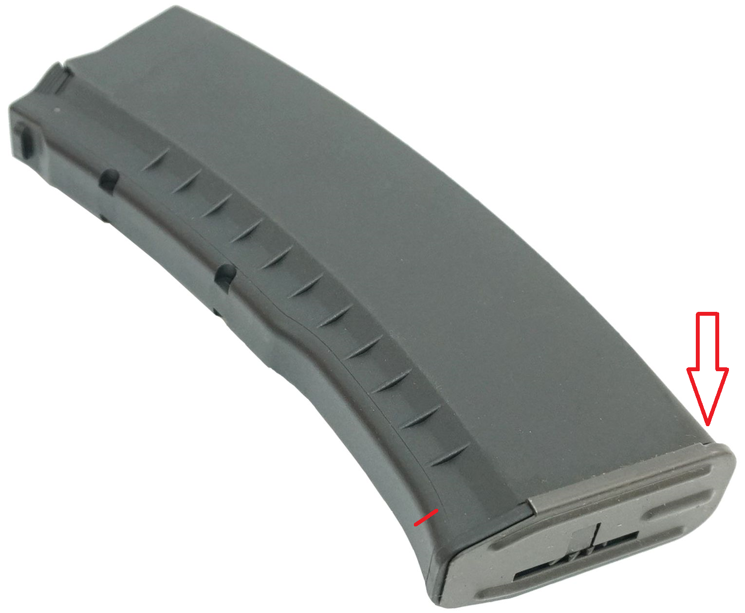Но помните, что пропил нужно делать именно в указанном месте потому-как если вы сделаете пропил выше, то его может перекрыть подаватель и вы ничего не увидите. Если обнаружили внутри магазина подозрительный предмет то ни в ком случае не выбрасывайте его(его может подобрать другой солдат) такой магазин уничтожается на месте подрывом, при помощи накладного заряда.