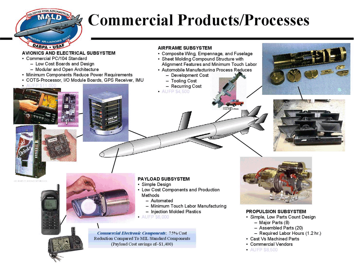 Применение хорошо отработанных и дешевых коммерческих технологий позволило снизить цену БПЛА при массовом производстве до $30000.