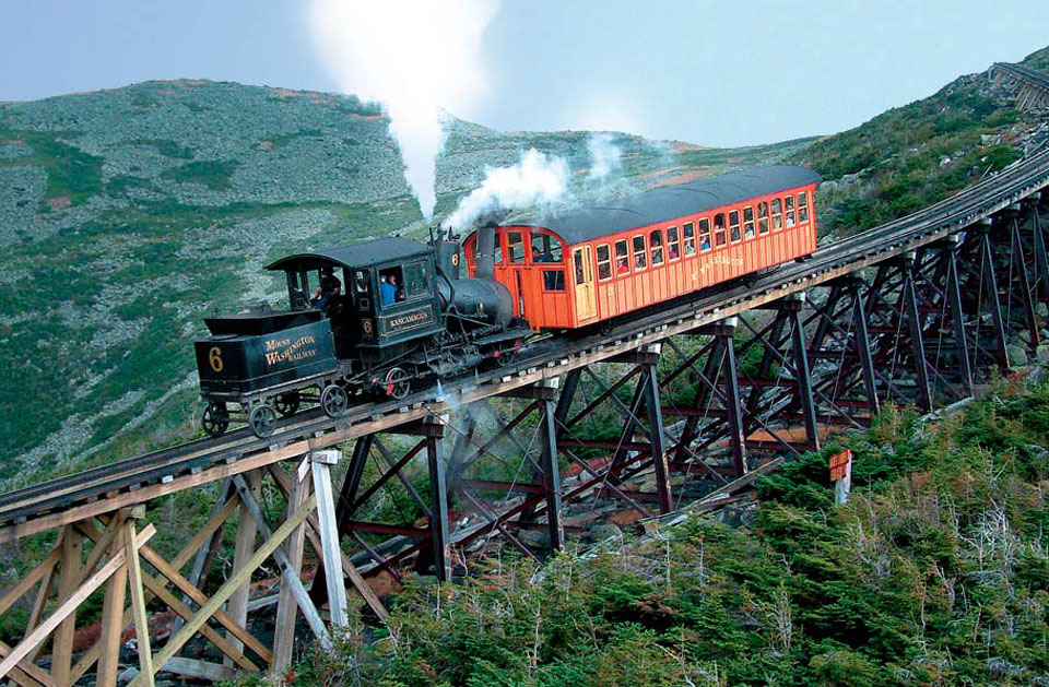 150 лет назад, 29 августа 1869 года в штате Нью-Хэмпшир заработала первая в мире горная зубчатая железная дорога. Эта дорога протяженностью 4,8 километра действует до сих пор, доставляя туристов и экскурсантов на вершину горы Вашингтон — высочайшую точку северо-востока США. В своем коротком пути паровоз с одним вагоном взбирается на высоту более километра. Средний уклон дороги составляет 25 градусов, максимальный — 37.