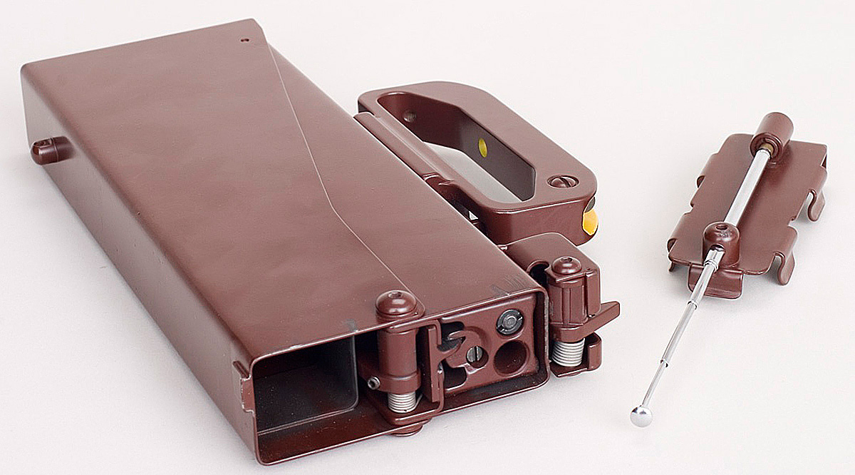 Основной особенностью конструкции оружия была, конечно, его способность складываться: в походном положении пистолетная рукоятка вместе с магазином складывалась вперед и закрывалась прикладом-кожухом.
