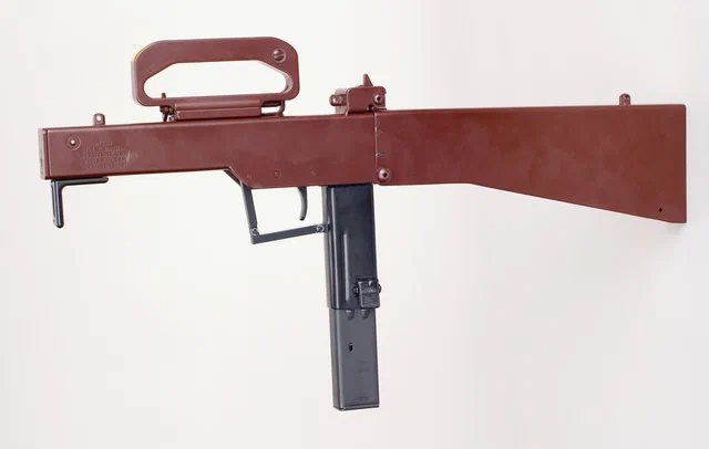 Для еще большей скрытности пистолет-пулемет получил антенну-муляж, которая должна была придавать ему схожесть с радиоприемником и мог окрашиваться в разные цвета: всего было изготовлено 9 единиц, из которых только два были черными (в фильме Хоб стреляет из оружия, окрашенного в голубой цвет).