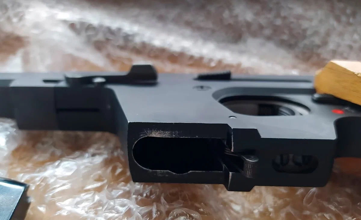 Спусковой крючок представляет собой цельный модуль, который может быть заменён. Стрелок может настраивать под себя усилие спуска и даже положение спускового крючка. А два модуля в комплекте позволяют расширить диапазон настройки. Если первый модуль, к примеру, достиг предела по настройке минимальной силы спуска, можно поменять его на второй, в котором нужный стрелку диапазон будет доступен. Такая опция была не сразу, её добавили только 1988 году.
