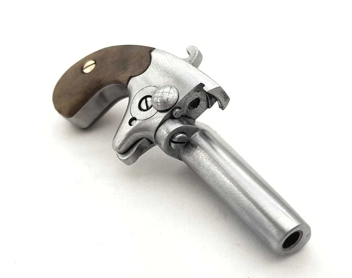 В этом же году он решает начать выпуск своего дерринджера — уже поздновато, когда на руках у конкурентов уже были запатентованные конструкции. Вот тут-то и заработал типичный стимул конструктора: «сделать так, чтобы не пришлось ни с кем потом судиться». Так и появился пистолетик, громко названный Eclipse («Затмение»), который и «засветился» в замечательном филме Роберта Земекиса.