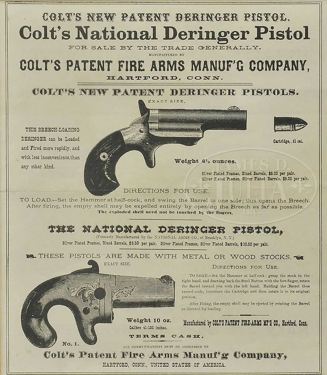 Фирма Мура просуществовала недолго — уже в 1865 году он продает права нью-йоркской компании National Arms, которую спустя еще пять лет выкупает с потрохами «Кольт» — отсюда и наиболее широко известное название пистолета, Colt Deringer (именно через одно r).