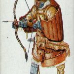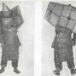 Броня чукотских воинов представляла собой ламинарный доспех из кожи тюленя-сивуча. Он закрывал тело от шеи до колен. Встречались образцы из костей и рогов оленя. Из кожи также делались щиты. Они имели форму крыльев и носились на спине. Главным оружием чукчей был лук. Их существовало три вида: длинный, до двух метров, средний, примерно 120 см, и малый, до метра. Чаще всего использовался универсальный средний вариант.
