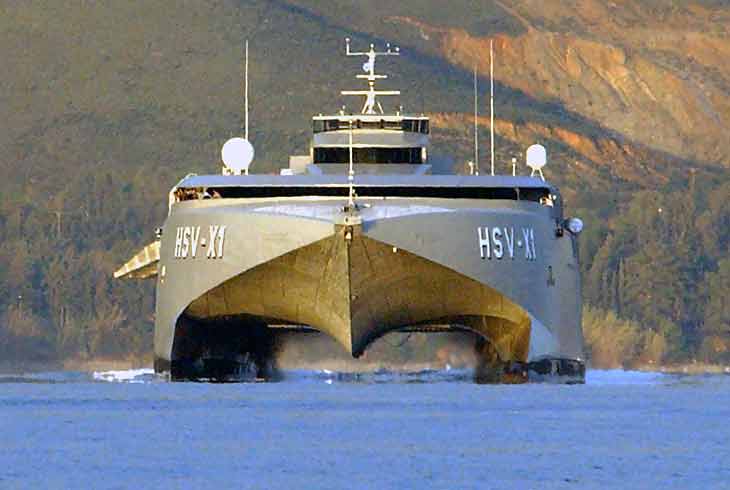 Катамаран HSV-X1 может выполнять сразу несколько функций, таких как разведка, перевозка солдат и техники, определение местоположения мин, общее командование и управление боевой операцией. Судно может нести 815 тонн полезного груза со скоростью сорок узлов, а максимальная скорость достигает сорока восьми узлов. HSV-X1 имеет два контейнерных отсека типа РО-РО с гидравлической системой погрузки.