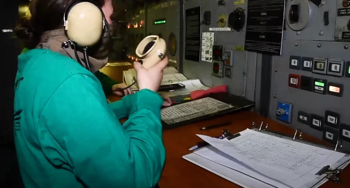 На самом деле у операторов катапульты вся сложность работы как раз и состоит в том, чтобы одновременно управлять сложным паровым оборудованием(а его нужно подстраивать к каждому самолету отдельно в зависимости от его типа, взлетной массы и боевой загрузки), держать связь с командованием на мостике и держать связь с пилотами истребителей. Но плюс ко всему им нужно осуществлять ещё и визуальный контроль происходящего на взлётно-посадочной палубе.