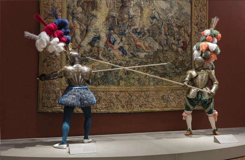 Средневековые европейские рыцари носили тяжелые металлические доспехи, чтобы защитить себя от лучников и длинных мечей противников. Шлем с гребнем, щит с ярким гербом и лошадь завершали дорогостоящую экипировку, предназначенную как для защиты, так и для устрашения. Эффект полностью одетого рыцаря был настолько завораживающим, что многие рыцари продолжали носить доспехи, несмотря на появление порохового оружия.