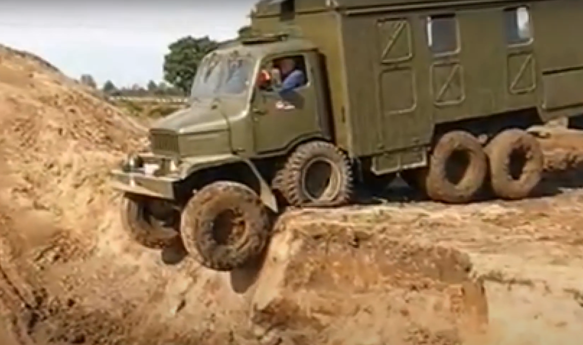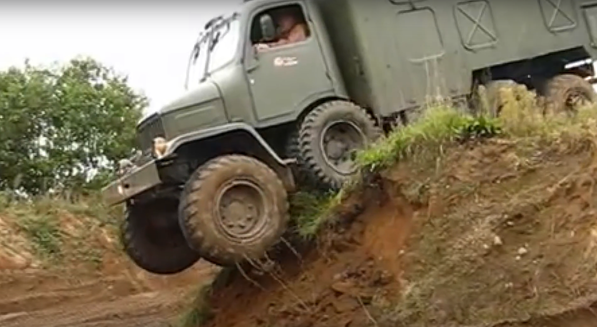Так когда передние колёса уходили вниз, то грузовик не ложился ни на раму, ни на топливные баки, а как бы опирался на проворачивающиеся колёса и легче преодолевал препятствия. При этом водители иногда не накачивали эти запасные колёса, потому что считалось, что на спущенных запасных колёсах грузовик легче преодолевает рвы.