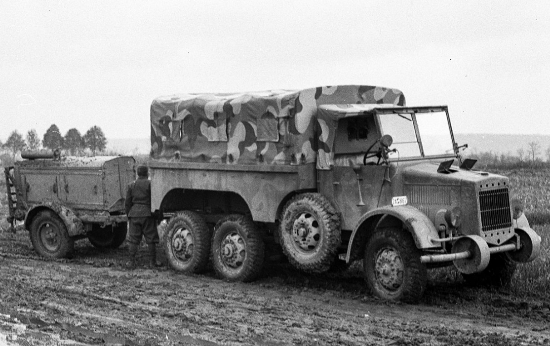Они как раз-таки устанавливались вертикально под кабину и свободно вращались, однако к ним не подходил привод. То есть, они могли просто проворачиваться. Это нужно было для того, чтобы грузовик преодолевал глубокие рвы, траншеи и окопы.