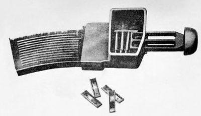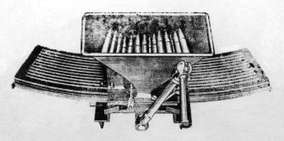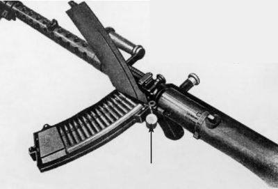 С целью исключения зацепления закраин 8-мм патронов при досылании их в патронник в пулемёте имеется автоматически действующая отсечка патрона не использующая пружину.