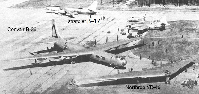 Объяснить такое внезапное решение ему оказалось очень просто. Достаточно было вспомнить о «детских болезнях» XB-35 и YB-49, упомянуть о загадочной катастрофе 28 мая 1948 г, а также указать на малый размер бомбоотсеков YB-49, которые не могли вместить атомные бомбы первых серий. Однако при желании и у В-36 можно было бы найти не меньше недостатков. Взять хотя бы проблемы с охлаждением двигателей, самопроизвольным срабатыванием реверса винтов в полете, вибрациями крыла и сложностями в техническом обслуживании.