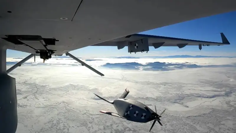 Возможно, проект A2LE не ограничится только сбросом с носителя. Ранее GA-ASI представила систему возвращения малых БПЛА на борт более крупного носителя. Для этого с большого беспилотника предлагается спускать трос с грузом, а малый аппарат должен ловить его специальным захватом. Затем носитель будет сматывать трос и затягивать SUAS / ALE внутрь грузового отсека.