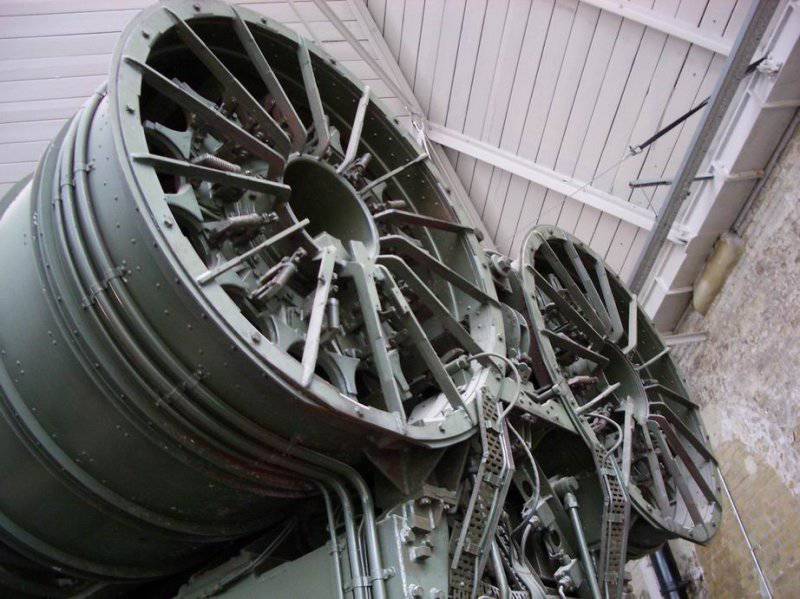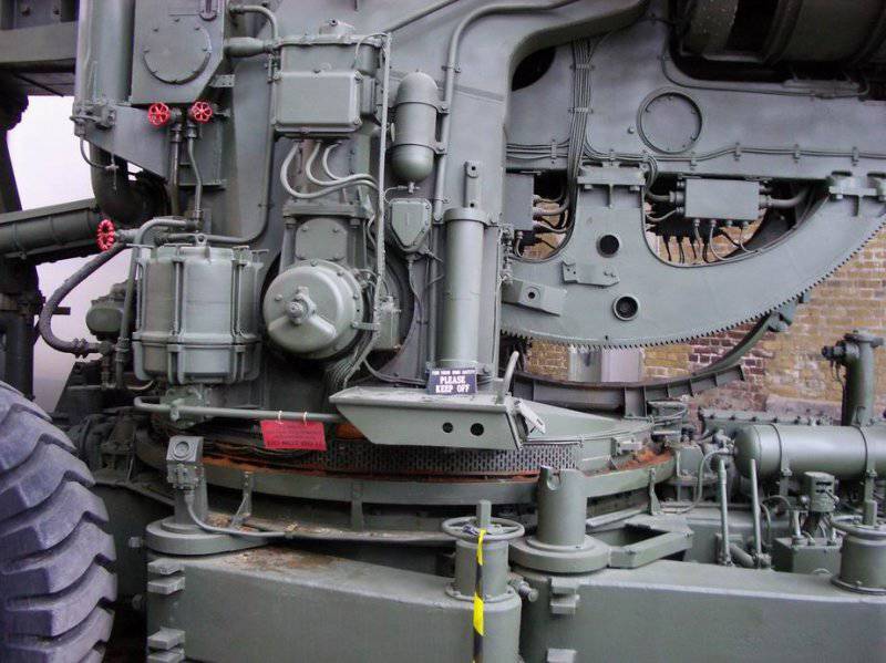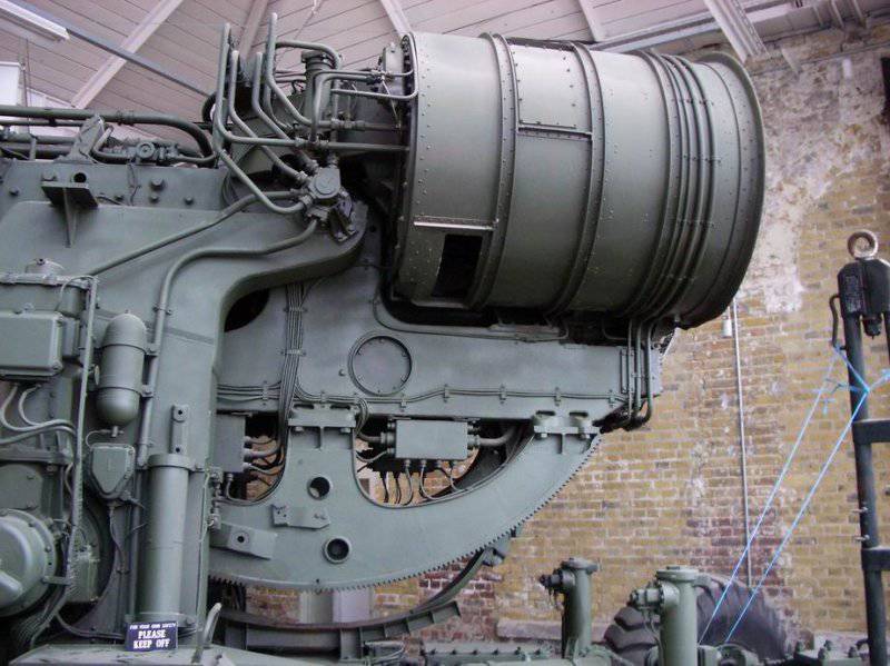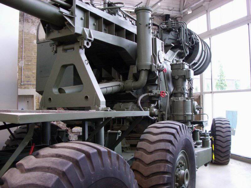 Поставленная перед Vickers задача была весьма непростой, поэтому RARDE разрешили сначала сделать орудие меньшего калибра и на нем отработать все нюансы полноценной пушки. Меньший калибр пробной пушки по факту оказался больше, чем у программ Longhand и Ratefire – 4,2 дюйма (102 миллиметра). Постройка опытной «малокалиберной» пушки под обозначением 102mm QF 127/58 SBT X1 закончилась в 54-м году. Восьмиметровый ствол этого орудия вместе с противооткатными устройствами, двумя бочкообразными магазинами, системами наведения, кабиной оператора и прочими системами в итоге потянул почти на 25 тонн. Само собой, такому монстру требовалось некое специальное шасси. В качестве оного избрали специальный шестиколесный буксируемый прицеп. На нем и установили все агрегаты опытной пушки. Надо заметить, прицеп смог уместить на себе только орудие с системой крепления, магазины и кабину оператора. Последняя представляла собой будку наподобие кабины современных автокранов. Поскольку наведение орудия, перезарядка и перекачивание воды для охлаждения ствола производились при помощи электромоторов, в состав комплекса пришлось ввести отдельные машины с электрогенератором и запасом снарядов. И это не считая радиолокационной станции, необходимой для обнаружения целей и наведения на них пушки.