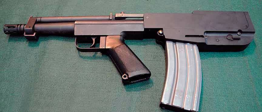 Выброс стреляных гильз осуществлялся вертикально вверх (относительно магазина). Питание патронами — из отъемных коробчатых магазинов емкостью 10 или 30 патронов.
