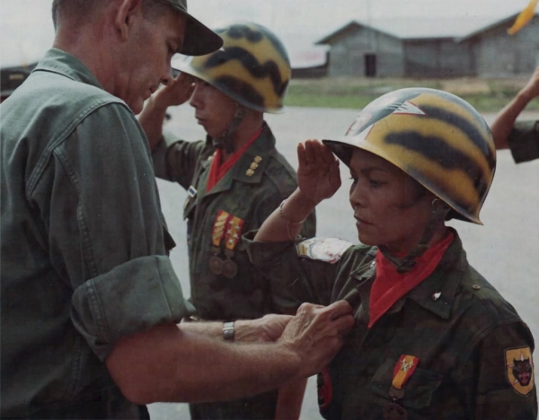 Но когда началась гражданская война и Вьетнам разделился на Юг и Север, её муж, Ле Ван Ден, стал офицером армии Республики Вьетнам (АРВН) и командиром 44-го батальона рейнджеров «The Black Tigers». Будущая «Леди Тигр» последовала за ним, став санитаром в его подразделении.
