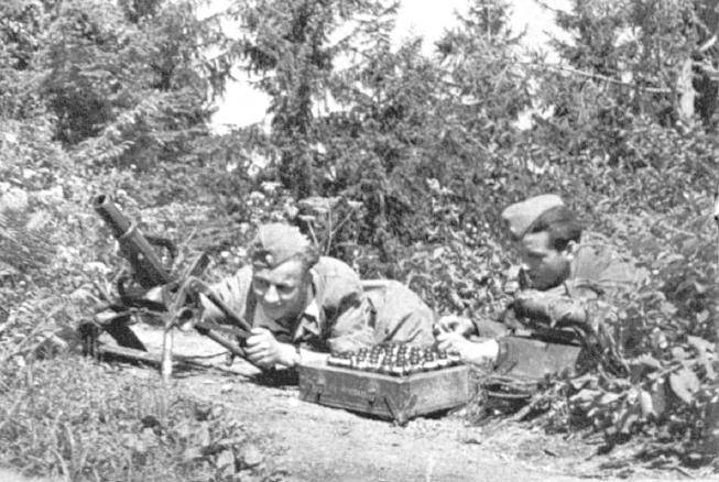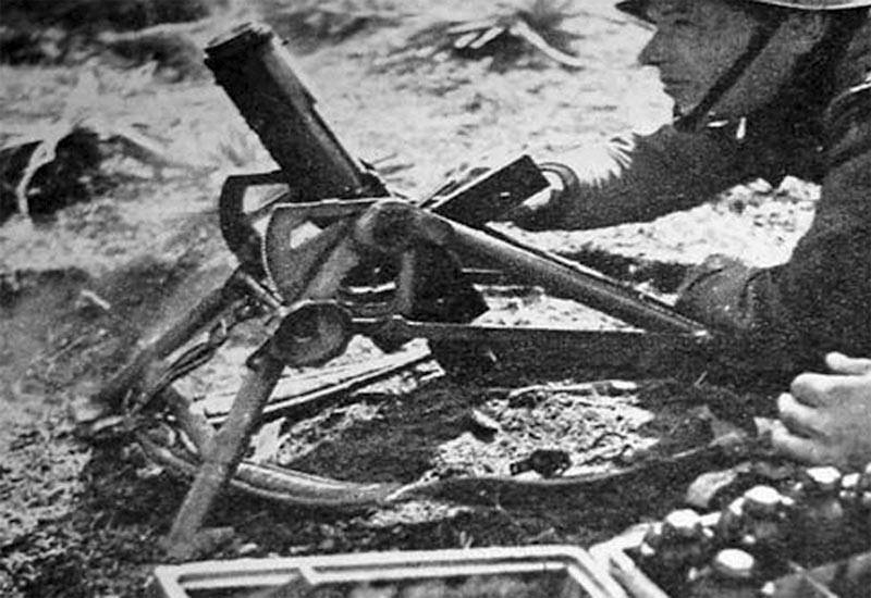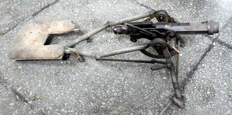 На уровне цапф люльки к передним опорам присоединялись две трубки, образовывающие третью. В рабочем положении четыре элемента трех ног станка скреплялись между собой парой подкосов. Сзади на третьей опоре крепился один из самых интересных элементов станка – платформа с небольшой подушкой. В зависимости от особенностей огневой позиции, ее можно было использовать как сидение или как опору для груди наводчика. Таким образом, конструкторы позаботились об удобстве минометчика в разных условиях.