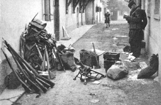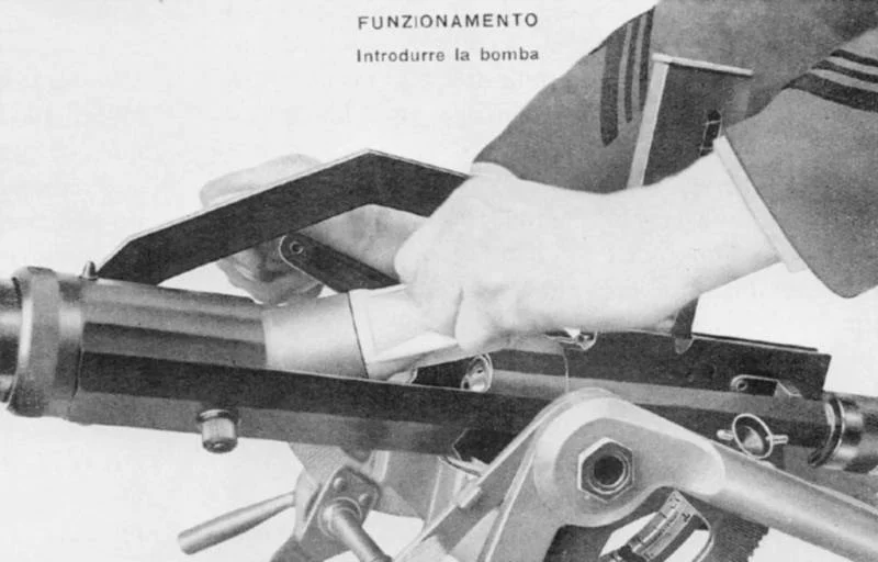 Затем боковой рычаг управления вручную возвращался в исходное положение, перемещая ствол назад. При движении ствол буквально надевался на мину. В крайнем заднем положении ствол упирался в переднюю стенку ствольной коробки, выполнявшую функции затвора. После этого автоматически спускался курок. Пороховые газы от холостого патрона поступали в канал ствола и выталкивали из него мину. Новое перемещение рычага вперед приводило к смещению ствола для перезарядки и извлечению пустой гильзы.