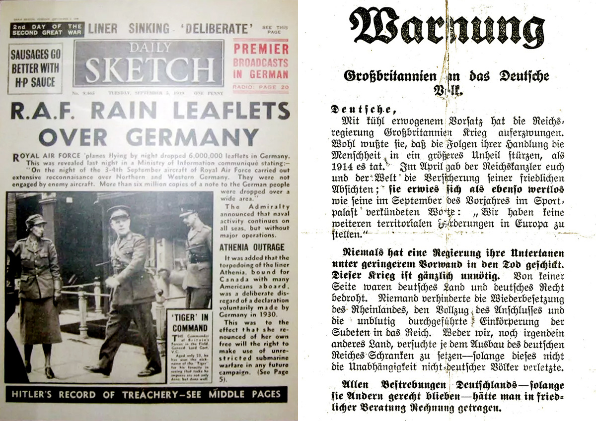 Вот такое примирительное послание, которое, разумеется, оказало нулевой эффект. Немцы, с промытыми нацистской пропагандой мозгами, над ним просто хохотали, тем более, что с польского фронта уже начали поступать победные реляции, вызывавшие у бюргеров воодушевление и энтузиазм. В английском истэблишменте эффективность «листовочных бомбардировок» тоже оценивалась, мягко говоря, неоднозначно, нередко вызывая скепсис и насмешки. В частности, будущий премьер Черчилль саркастично заявил, что «единственным результатом этого мероприятия станет обеспечение немцев большими запасами туалетной бумаги».