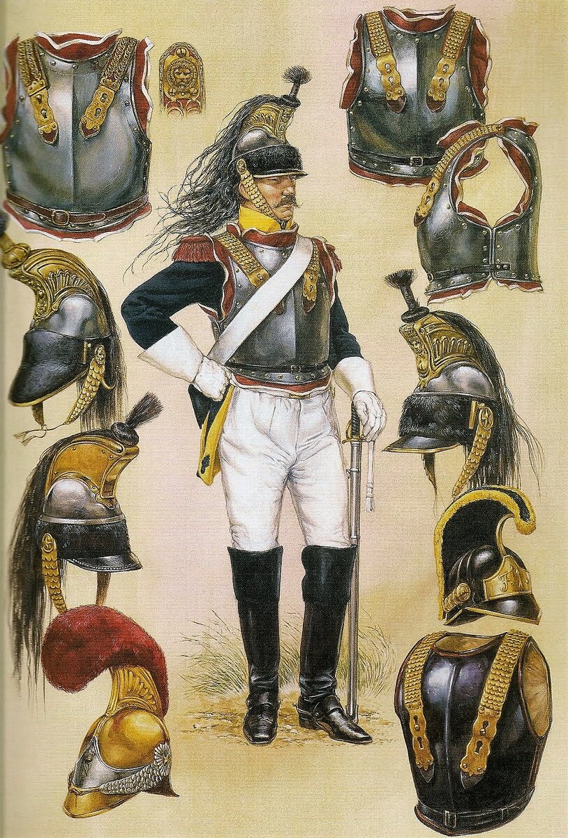Преимущество это складывалось из трех составляющих: более мощной лошади (рост в холке кирасирских лошадей составлял 155 — 160 см, тогда как рост гусарских — 149 — 153 см), более длинного и преимущественно колющего клинка (длина французского кирасирского палаша составляла 114 см, а длина английской легкокавалерийской сабли 94,9 см), защитного вооружения в виде каски, наплечников и кирасы.