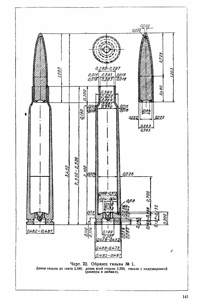 «Гильза имеет закраину, что отражается на величине диаметра затвора и ствольной коробки, а также всей укупорки: картонных пачек, цинковых коробок, деревянных ящиков. Закраина служит главной причиной задержек в правильной подаче патронов, в особенности в случае принятия более компактных и простых по своей конструкции магазинов с двухрядным расположением патронов».