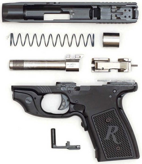 Конструкторы Remington сохранили систему работы автоматики и запирания, однако, в остальном пистолет заметно отличался от своего предка.