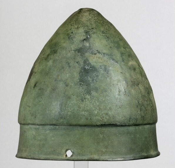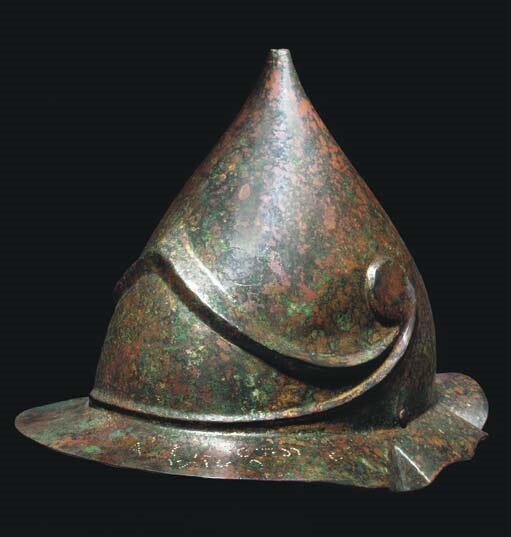 Греки пришли (вероятно, не без помощи соседей) к данному типу защиты головы в X веке до н. э. Собирался конический шлем из 4-5 сегментов, которые затем склепывались в единое целое. Он был дорог в производстве и имел не лучшие показатели защиты (мог при первом ударе развалиться на части). И в VIII веке он окончательно исчезает.