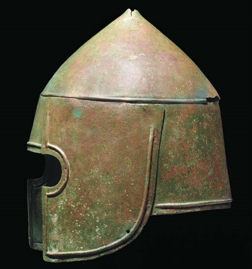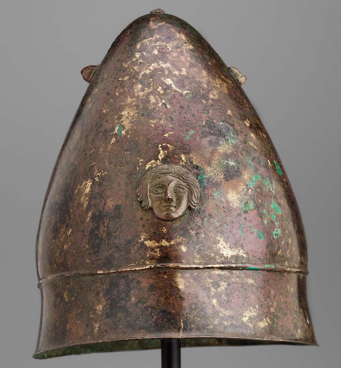 Хотя есть свидетельства, что нечто похожее носили уже в VI в. до н. э. Спартанцы обратили на него внимание в веке V. Также его носили легкая пехота и лучники. А образцы с приделанными нащечниками имели хождение даже среди всадников.