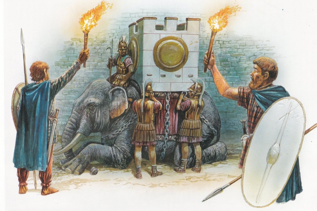 Пирр умело применял слонов в войне с римлянами. В 280 году до н.э. при Гераклее слоны сначала разметали римскую кавалерию, а потом опрокинули строй легионеров. Натиск огромных животных пытались сдержать горящими повозками из обоза, но финт не удался – римлян разгромили. Они сделали работу над ошибками, и уже в 279 году до н. э. при Аускуле легионы были насыщены зажигательным оружием – стрелами, дротиками и горшками со смолой. То сражение Рим снова проиграл, но благодаря нововведениям сорвал атаку слонов.