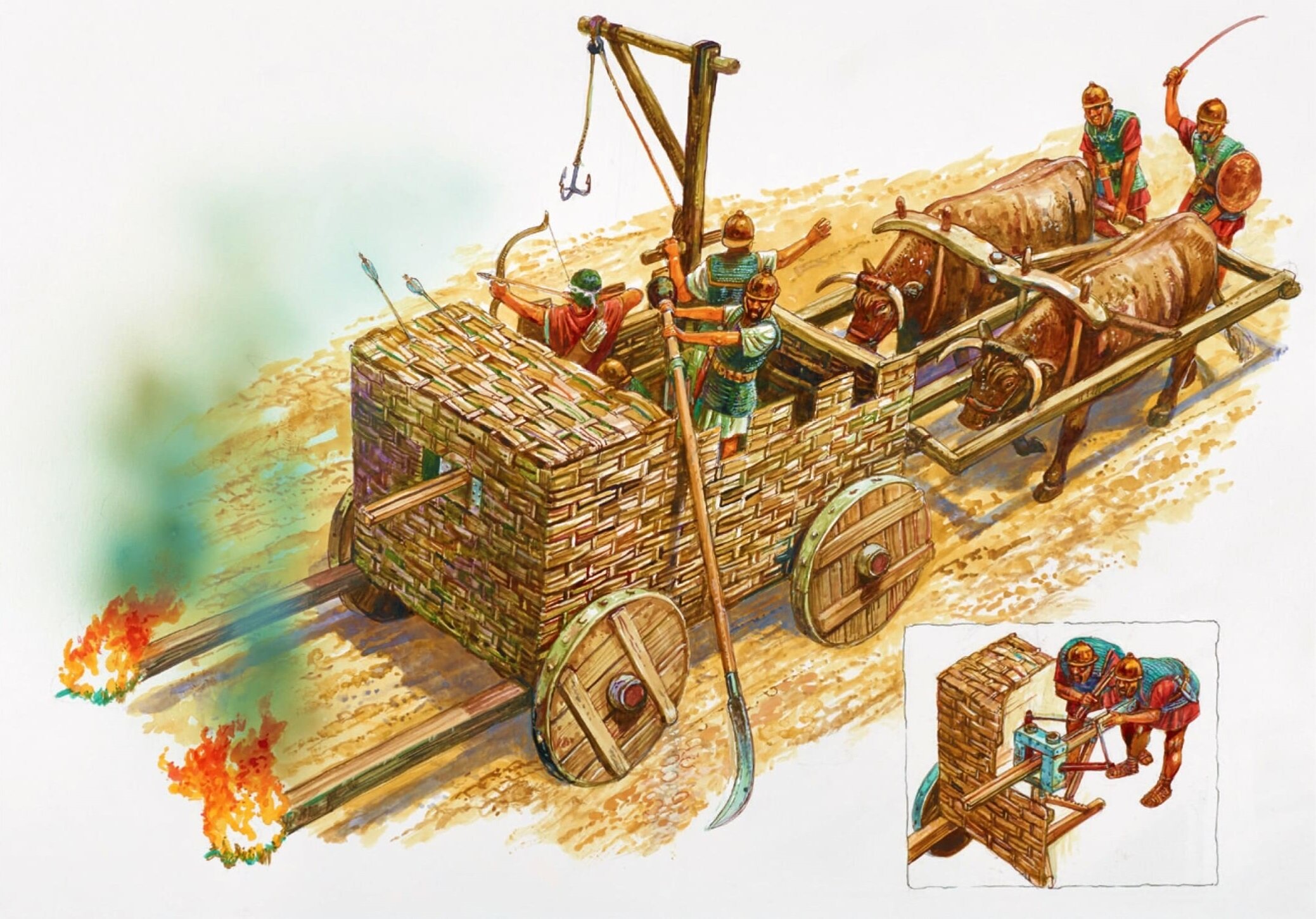 В свое время среди противников Рима числился Пирр – весьма одаренный в военном смысле царь Эпира. В данном контексте он интересен тем, что усовершенствовал отряды слонов. В юности Пирр участвовал в битве при Ипсе и видел их в деле. Они тогда не смогли прорвать строй противника, но способствовали отделению фаланги от конного прикрытия флангов, что и явилось залогом победы. А потому Пирр всячески холил и лелеял элефантерию в своей армии. Ему, в частности, приписывается изобретение плетеных корзин на спину слонов. Отчего слоновий экипаж увеличивался до четырех человек – один погонщик и три стрелка. Это к уже известному оружию слона – бивням и ногам.